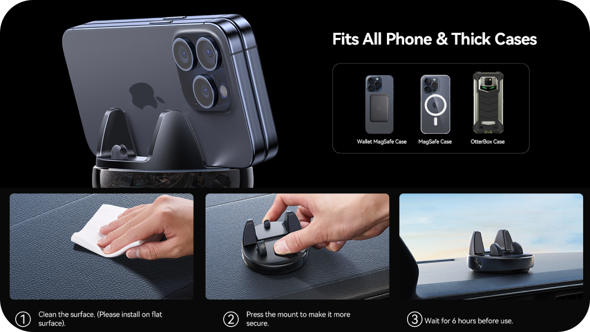 Suitable for Dashboards, Desks, and Other Flat Surfaces.