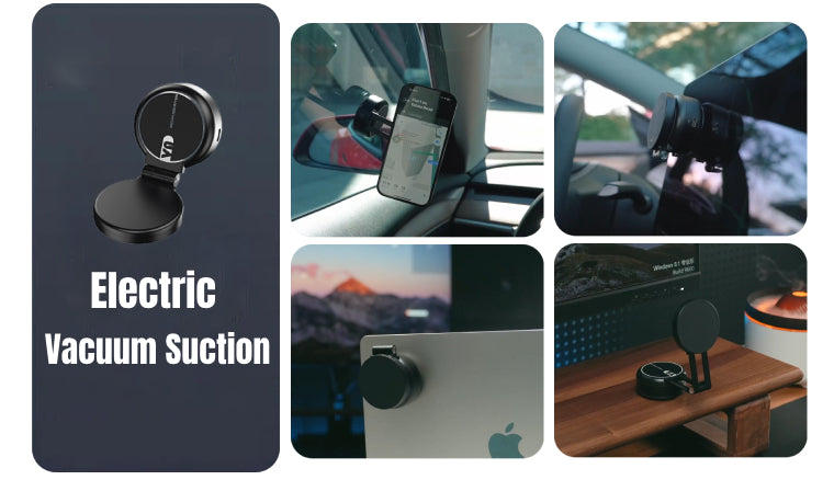 Equipped with electric vacuum suction technology, this phone mount firmly adheres to any smooth surface, making it ideal for various scenarios. Use it in your car—on the dashboard, infotainment screen, windshield, or rearview mirror—or in home and office spaces like your desk, wall, or kitchen counter.