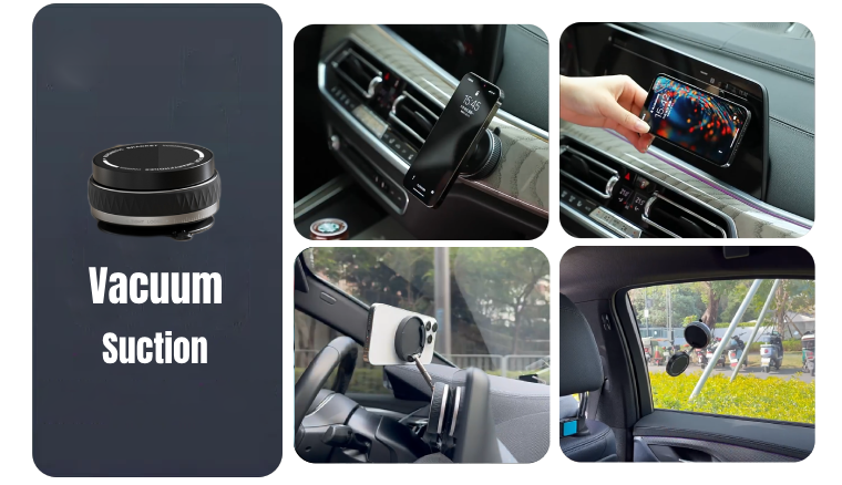 Multi-Scene Flexibility: Featuring a strong vacuum suction base, this phone holder can firmly attach to any flat surface, making it ideal for various settings. Perfect for use in cars (dashboard, infotainment screen, windshield, etc.), as well as in home and office environments (desktops, walls, and more).