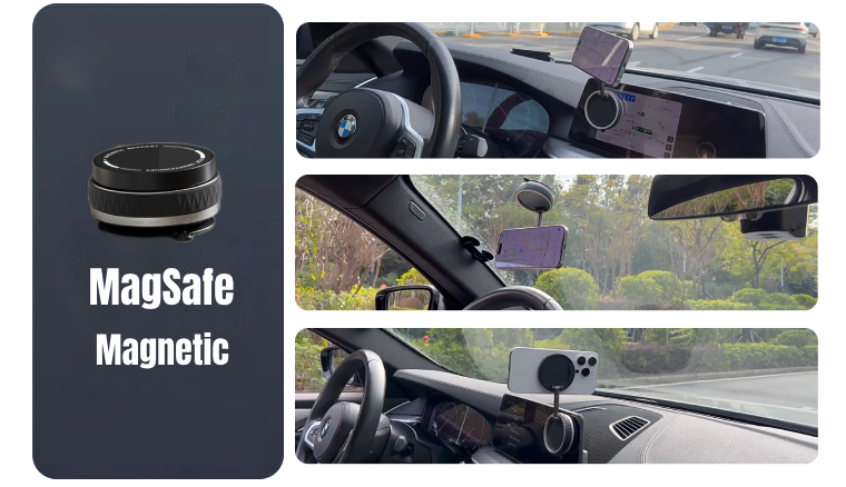 Equipped with advanced Magsafe technology, this mount securely holds your device with a magnetic grip. The anti-vibration design ensures your phone stays stable even in motion, preventing any unwanted slips or falls while driving or on a vibrating surface.