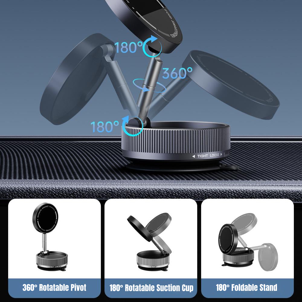 Magnetic Phone Mount for Car & Desk – Suction Phone Holder for iPhone & Android | Magsafe Compatible | Adjustable & Foldable Design