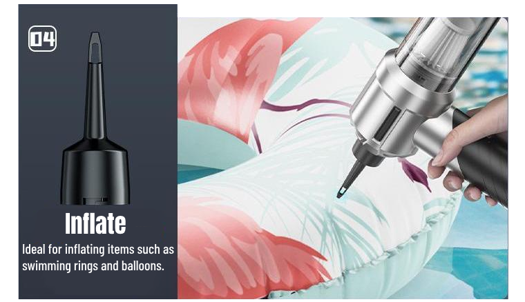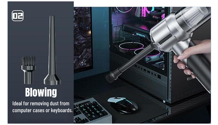Quickly and effectively remove dust, pet hair, crumbs, and debris from various surfaces. Whether it's your car seats, floor mats, or kitchen counters, our vacuum cleans it all. The dual-function design allows you to switch between vacuuming and blowing, offering a versatile solution for everyday cleaning.