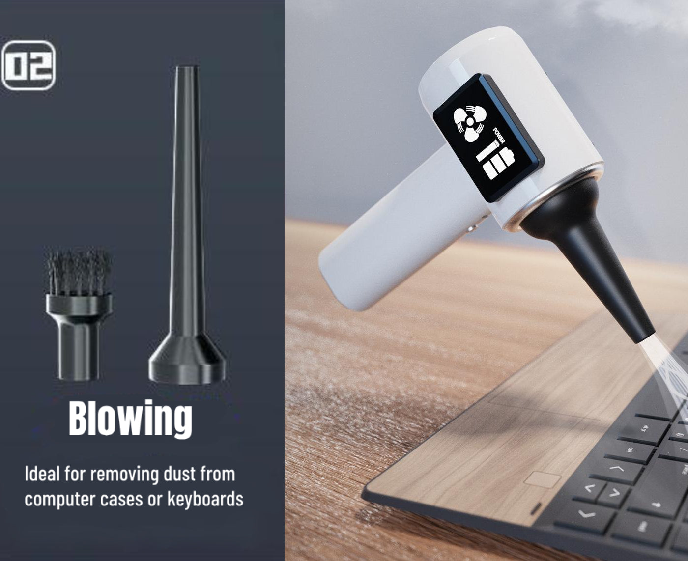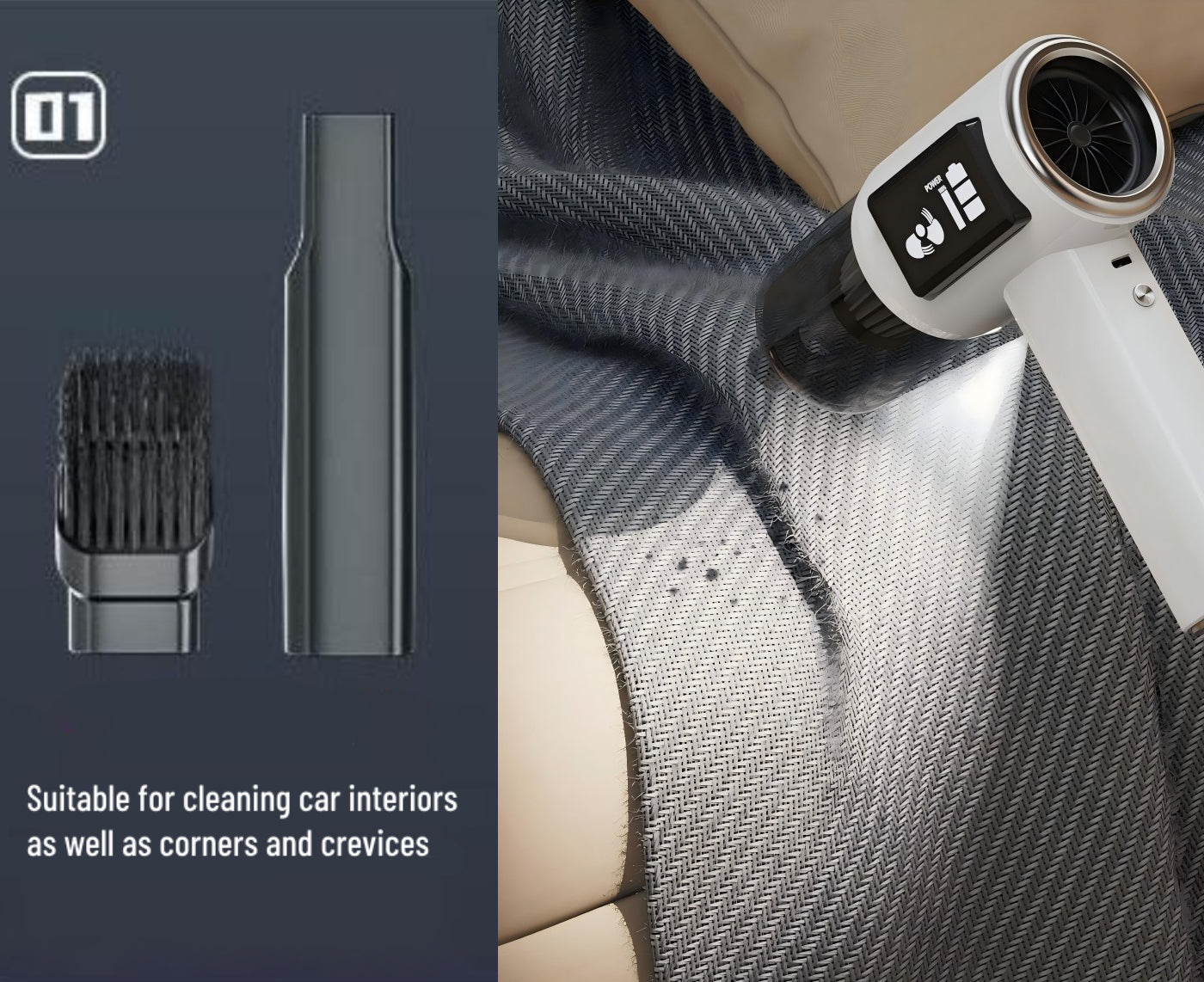 Quickly and effectively removes dust, hair, debris, and more. Perfect for cleaning car interiors, furniture, and other surfaces. It also doubles as a dust blower, making it a versatile tool for home or car cleaning.
